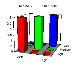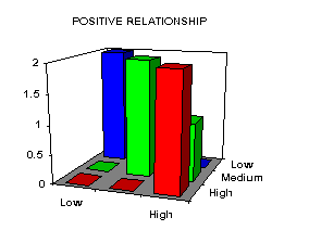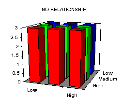 3. Interaction: In this relationship, the third variable's categories affect the relationship of the original two variables differently. Example: Career Aspirations of Sociology Graduate Students by Sex with the controlling variable of GPAs. High GPA's show little differences between the sexes, but average GPA's influence females to choose less prestigious career paths and have little affect on males' career aspirations. The lower GPA's affect both sexes in reduced career aspirations, but still affects female students to a greater degree.